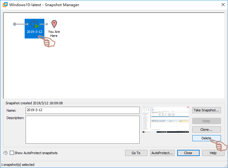 VMware Workstation is common used virtual machine tool in Windows computers. It works with graphical interface, so it is better for personal users. Once again, check if there are snapshots created and power off this virtual machine before starting.