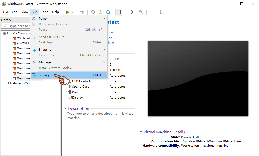 Step 1: Click VM from top menu bar, then click Settings, or click Edit Virtual Machine Settings in a virtual machine tab.