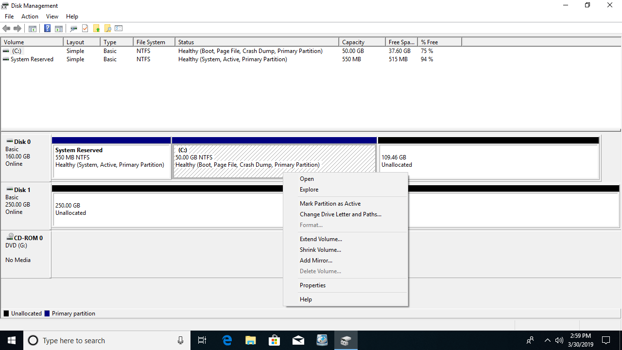 However, if you want to extend C drive by shrinking D or other volume, Disk Management cannot help you, because unallocated space that shrunk from any volume is nonadjacent to C drive, so Extend Volume is greyed out. If you want to do that, disk partition software is needed.