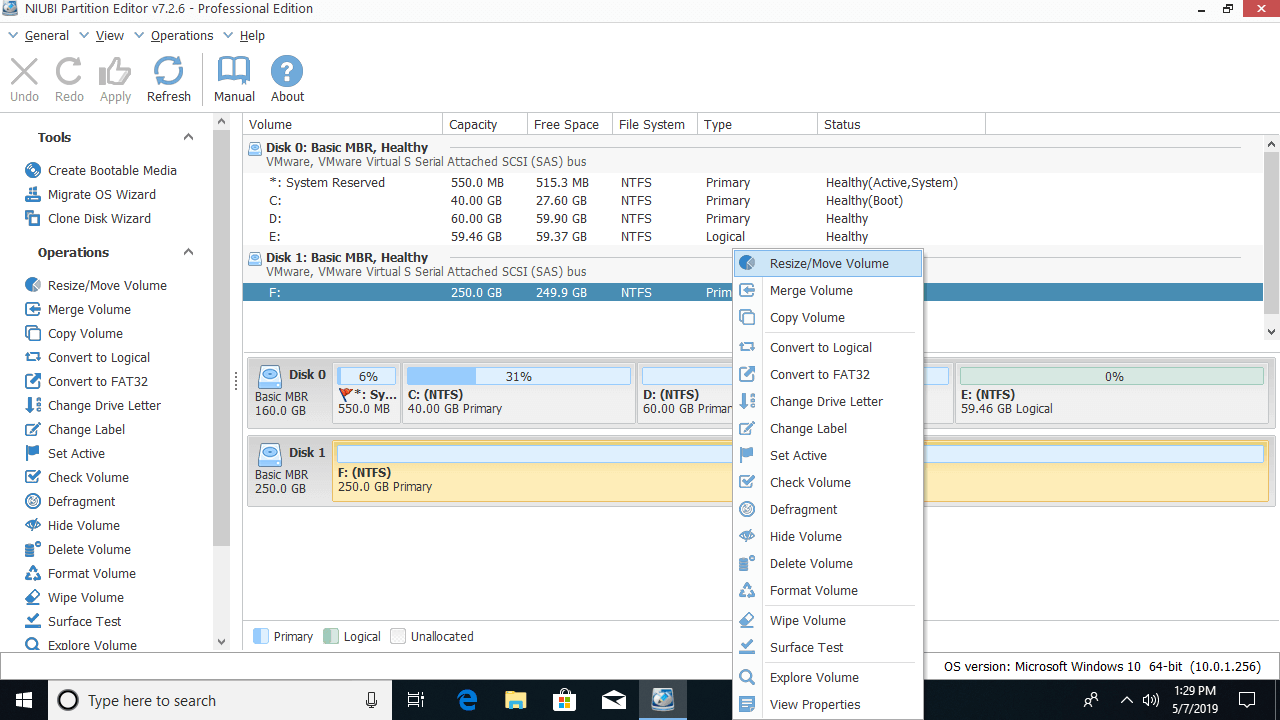 How to move partition to the right in Windows 10/8/7 with NIUBI: