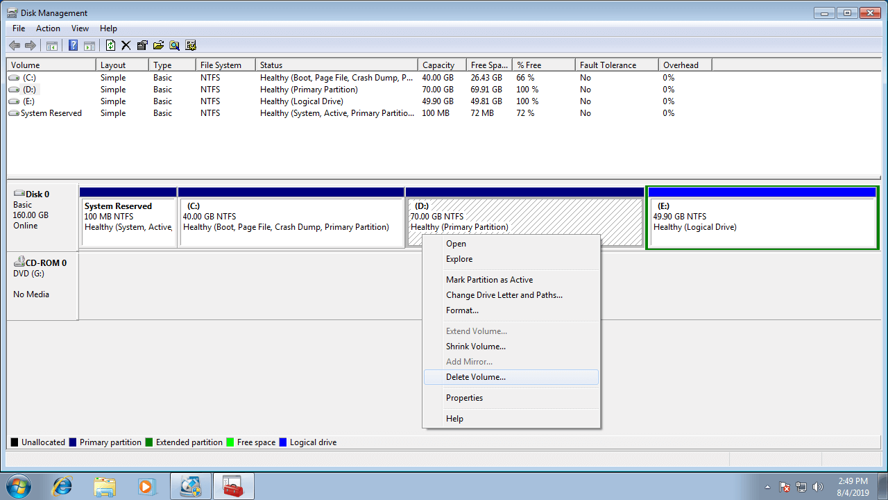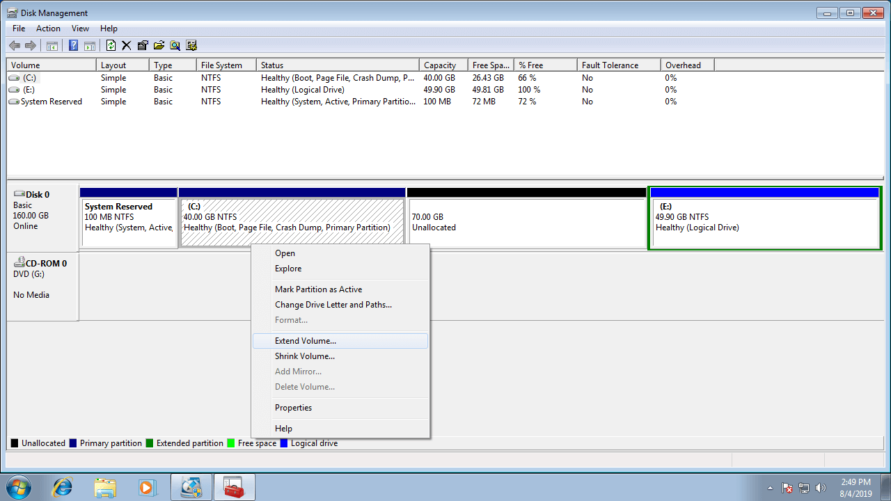 Guide to extend partition/volume in Windows 7