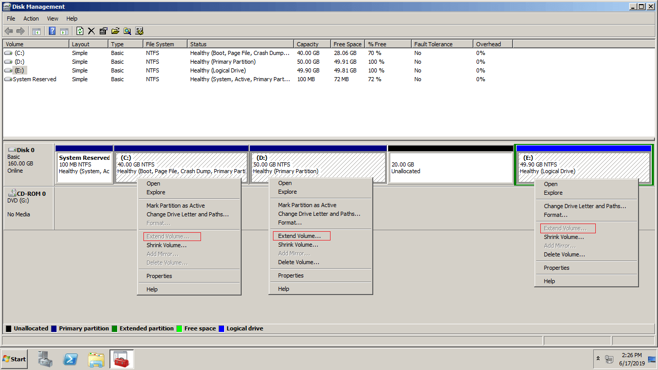 How to extend C: drive in Server 2008 R2 by shrinking D/E