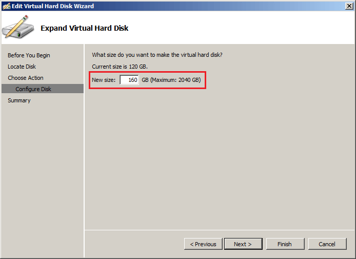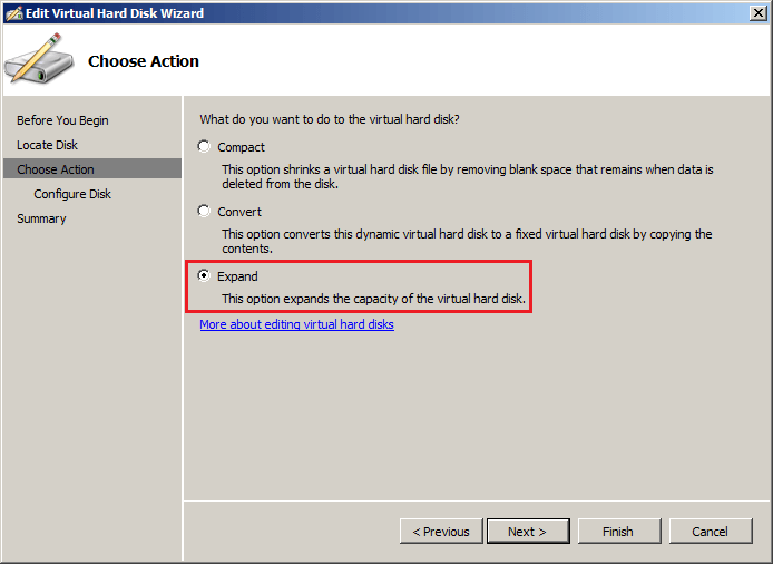 Steps to increase/expand virtual disk size of VHD in Windows Server 2008 R2: