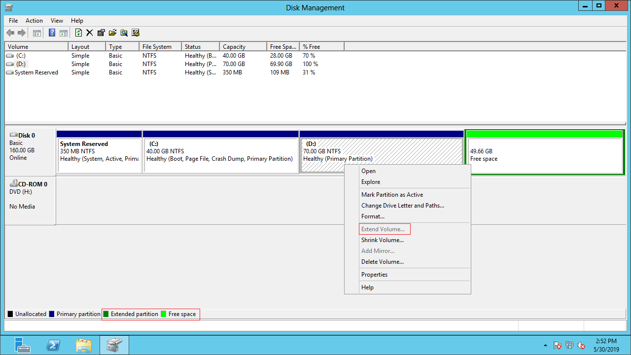 Extend Volume greyed out Windows Server 2012/2016/2019/2022