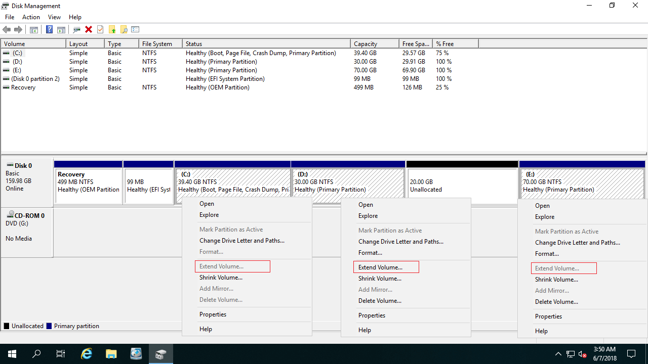 Windows Server 2019 Disk Management has the ability to add unallocated space to other partition, but it is useless in most cases. Because Disk Management can only merge unallocated space to the left contiguous partition.